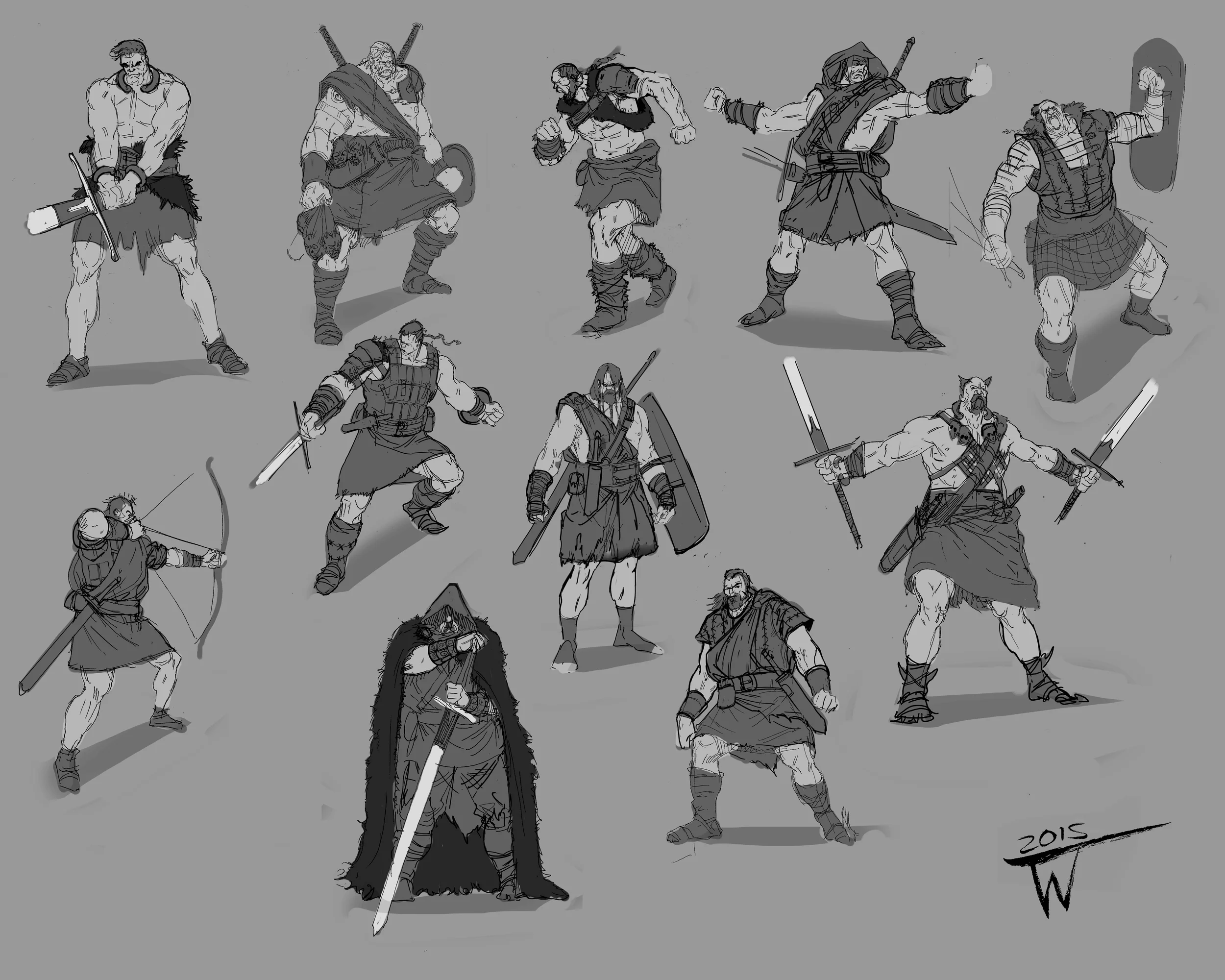 I wanted to share a personal project I have been working on. This was a concept that i wanted to do and had in the back of my head for a little while. I started thinking about a Scottish warrior that fought mythical creatures from there lore. Here were some quick sketches i did to get started.